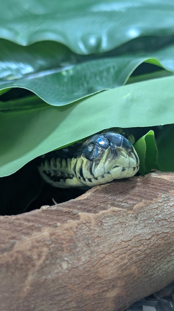 I prefer being slowly removed from my enclosure by hand or with a hook but am happy to cruise around outside my enclosure. It might take a bit for me to get comfortable with you, but we can bond over garden exploration dates! I enjoy climbing through the plants and on the sticks in my enclosure - just like a fake rainforest.