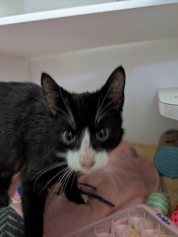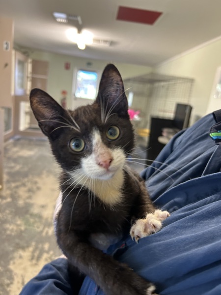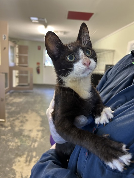 I'm a 5-month-old black and white kitten with the softest fur and the biggest heart. Seriously - I have so much love to give, and I'm just waiting for the right person to give it to. Could that be you?
