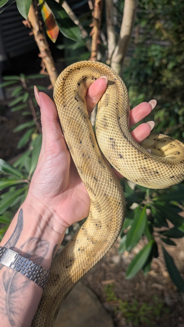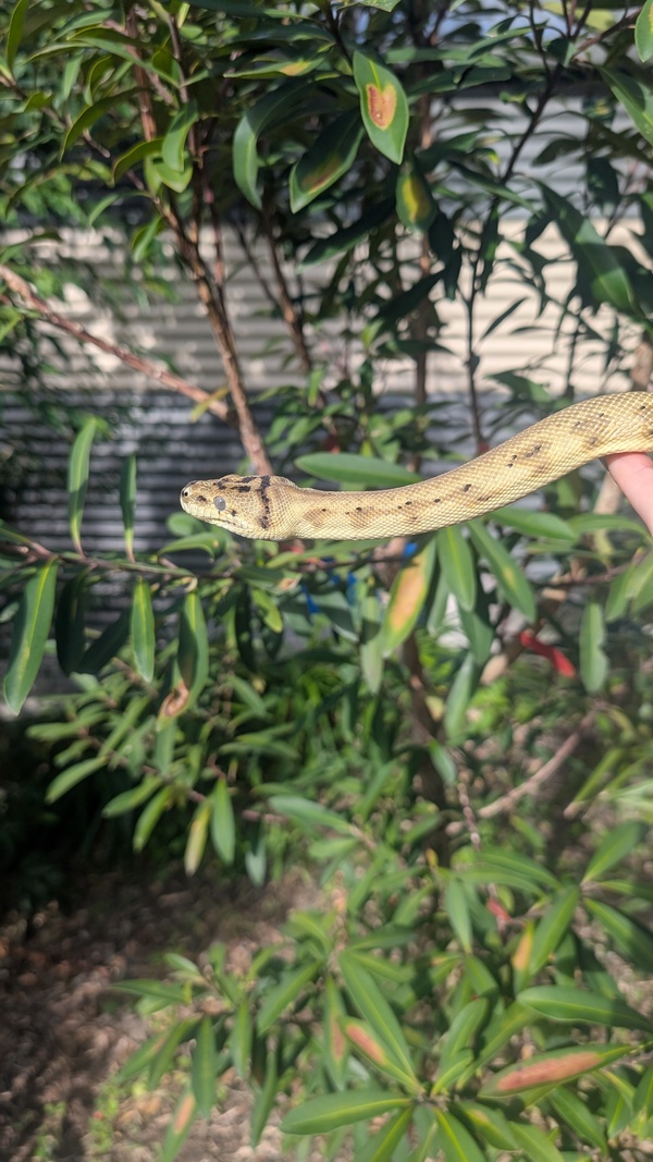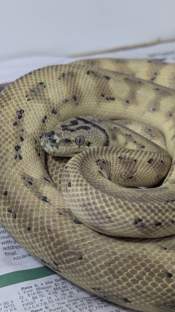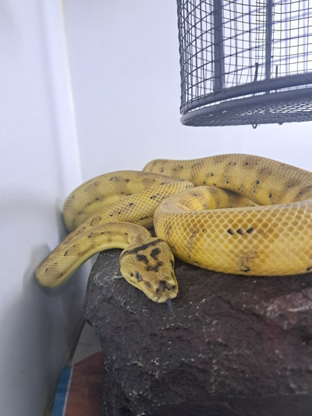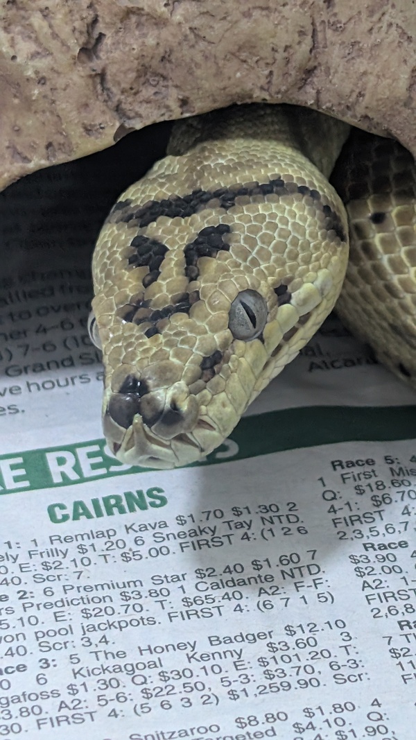 Hi, my name is Pawpaw and I'm a handsome Jungle Carpet Python. You would usually find my species in the tropical rainforests of Queensland.
