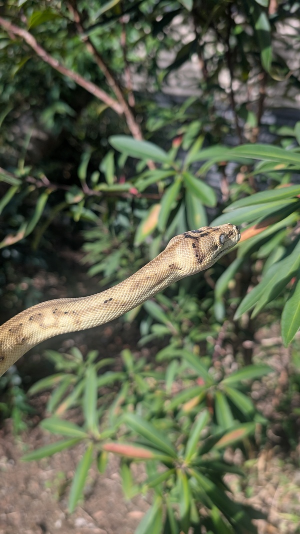 I am happy to be picked up out of my enclosure but might take some time to warm up to you. I enjoy climbing through the plants and on the sticks in my enclosure - just like a fake rainforest. My favourite though is the sun time outside to soak in the UV rays!