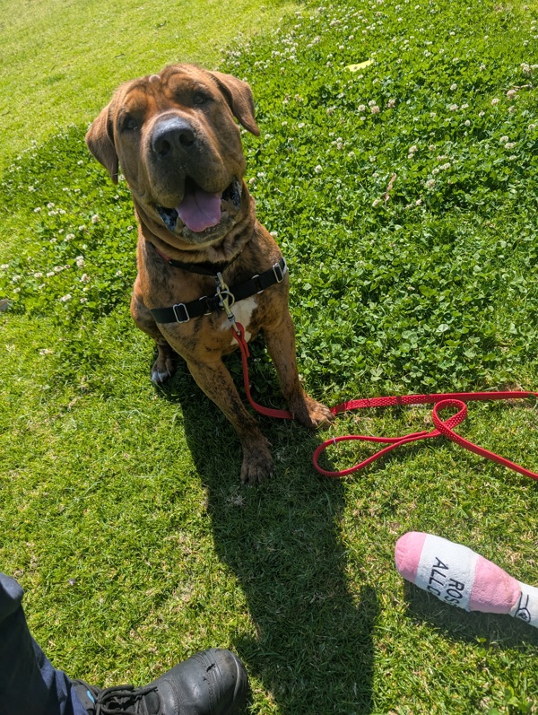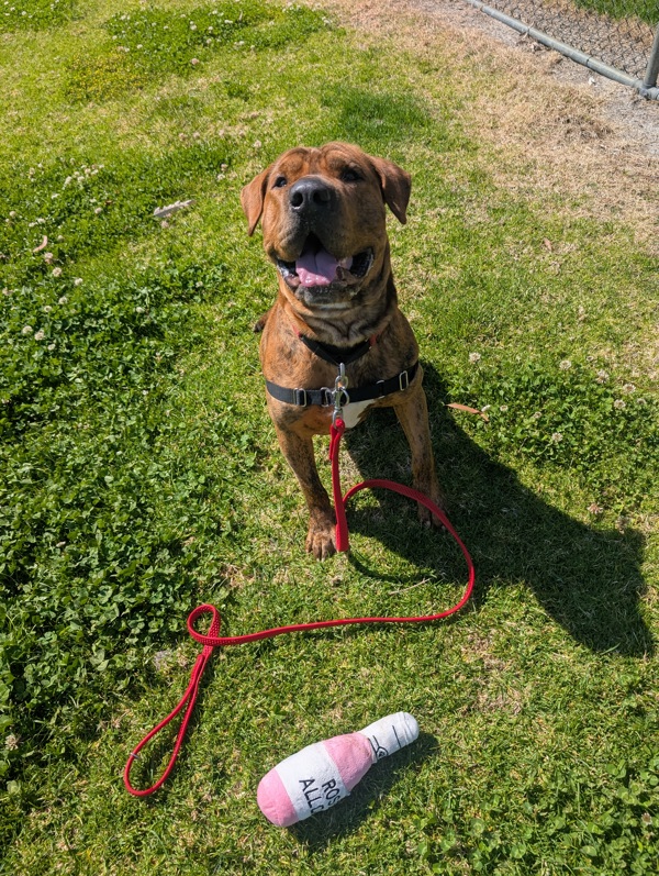 Hi! I'm Boe, and I'm not just any dog - I'm your soon-to-be Best "Boe" Forever! I'm a large, goofy, bouncy 1 year and 9 months old mixed breed with a heart as big as my paws.I'm full of energy and love to bounce around like I'm starring in my own doggy trampoline show. I might be a little clumsy sometimes (hey, I'm working on it!), but I make up for it with tons of love, laughs, and goofy antics that will brighten your day.I'm best suited for adults or families with older kids who can match my playful spirit. I'm recommended to be the only dog in the home - I like being the "Boe" of attention! But don't worry, I do love meeting other dog friends during playdates and walks.If you work full-time, no worries! I'm pretty independent and happy to chill while you're away - but once you're back, I'll bring all the bouncy fun and cuddles you could want.Ready to have your days filled with endless joy and a big ol' "Boe-nce" of energy? Come meet me - I promise to be your loyal, goofy, and lovable best Boe-ever!See you soon!Boe xx