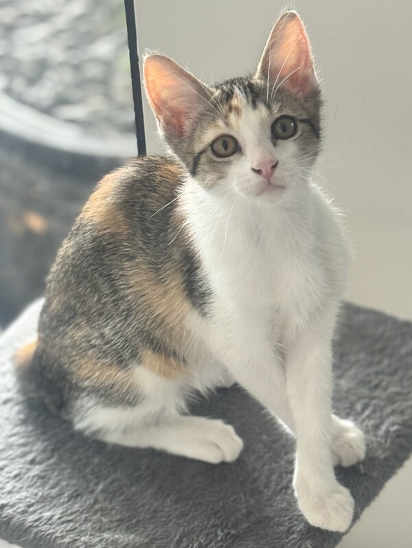 Pansy is a 3 month old calico kitten with stunning tri-coloured markings and a personality as beautiful as her coat. She's gentle, affectionate, and full of quiet confidence-a little sweetheart who captures hearts wherever she goes.