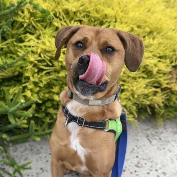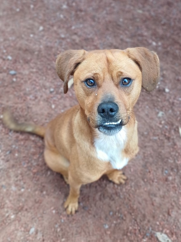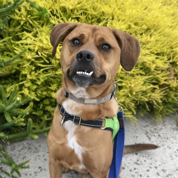 Meet George! He's a charming boy with a heart as big as his puppy-dog eyes - and a remarkable underbite that makes him look like he's always halfway through a cheeky grin. This sweet guy is just beginning to discover the joys of pet life and is looking for a patient, loving home to help him build confidence and feel safe. He's a very smart boy, loves learning new tricks (and loves the treats that come with it), and has started to enjoy solo playtime with his toys. George would thrive in a calm, adult or teen household with a spacious and quiet backyard, and with people who understand that slow and steady wins his heart. He may be able to share his home with a calm, desexed doggy friend after proper introductions, pending a meet and greet. If you're ready to cheer him on as he blossoms into the goofy, loyal companion he's meant to be, George is ready to take those steps with you - one paw at a time.