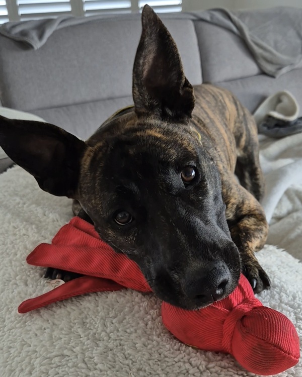 Senna is still learning about the world and can be a little unsure in new environments. She'll need time to settle into her new home before venturing out on walks or exploring unfamiliar places. With patience and consistency, she'll gain confidence and continue to grow into a well-rounded dog.