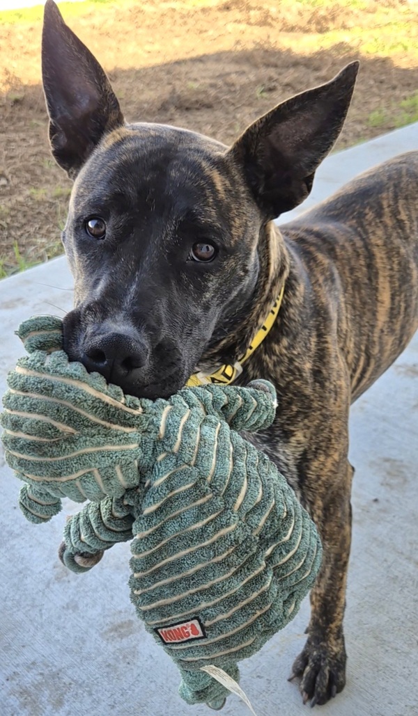 Senna is a juvenile dog with a zest for life and a heart full of affection. Once she's outside the kennel, she's a dream to walk-easygoing, curious, and eager to explore the world around her. She has a lovely recall and responds well to basic cues, especially when paired with gentle touch and encouragement.