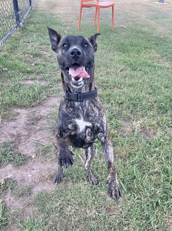 She already knows how to sit and is eager to please - making her a great candidate for ongoing training. Her new family should be committed to continuing her development with positive reinforcement and gentle guidance.