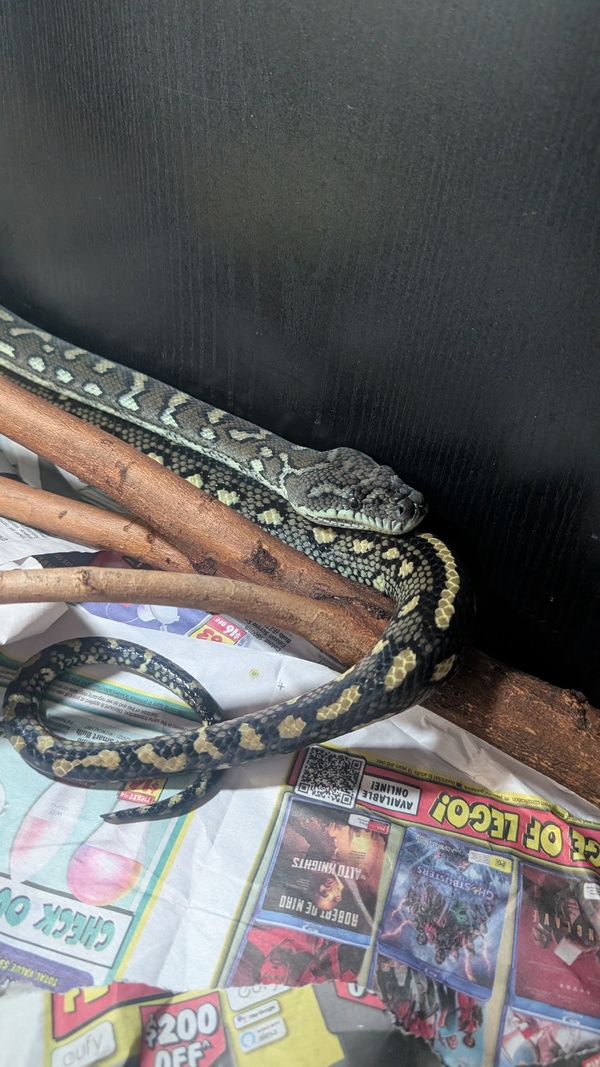 I am still getting used to handling so prefer to come out of my enclosure with a hook. I have improved with my handling since arriving at RSPCA but will need continued practice to improve. I am definitely a nosey parker and love to see what's going on outside my enclosure. I love my rodents and am a fantastic feeder!