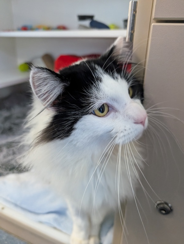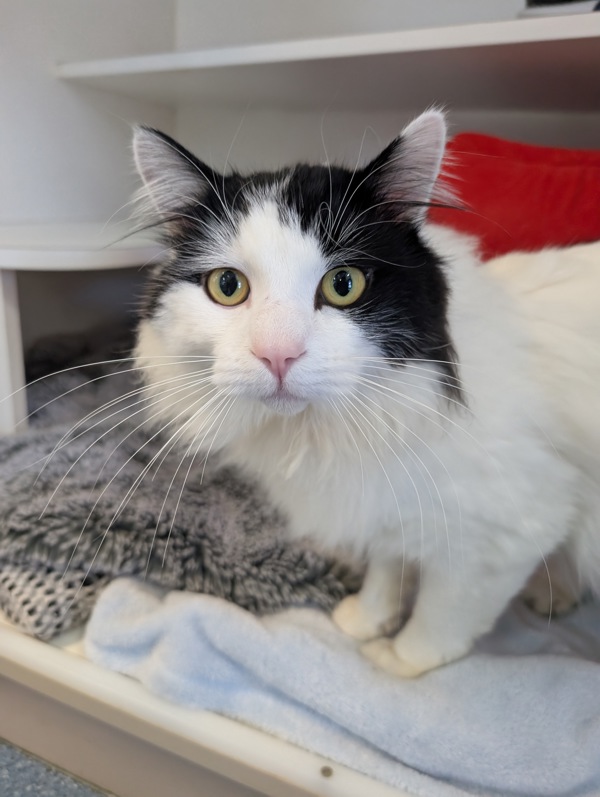 Do you have a soft spot for dramatic floof and big personalities? Then Orca may just be your soulmate in cat form. With his tuxedo-colored fluff and striking presence, he's not just a cat - he's an experience.