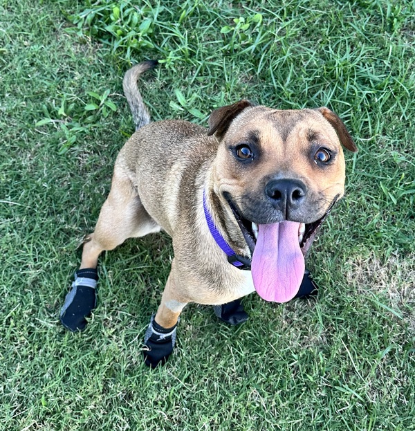 This playful pup is ready for a fresh start in life and would love to spend her time as your little shadow.