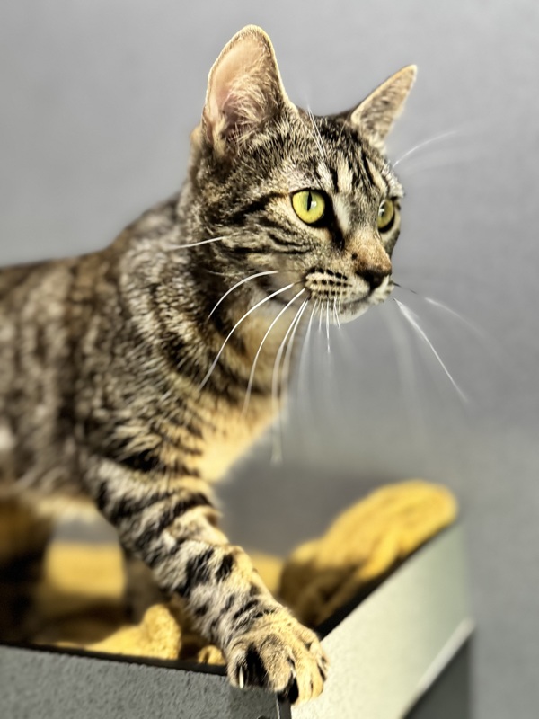 a young, sweet, and mellow cat who loves a quiet cuddle more than anything. While I'm not too keen on other cats, I thrive on human companionship. I have had a litter and is now ready for my own life to begin Imagine us on a lazy Sunday, just enjoying each other's company in peace. I'm looking for a forever home where I can be your one and only feline friend. Adopt me, and let's share a life full of gentle moments and soft purrs.