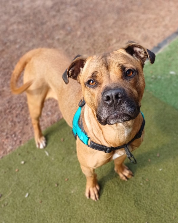 Meet Zelda, a sweet and energetic young American Staffy X who is looking for her forever home! She is highly food motivated and shows great potential to pick up new skills. Zelda has not had a lot of exposure to the world and would need an experienced and physically confident owner who is prepared to help her build confidence and manage her boisterousness through positive reinforcement and consistent training.