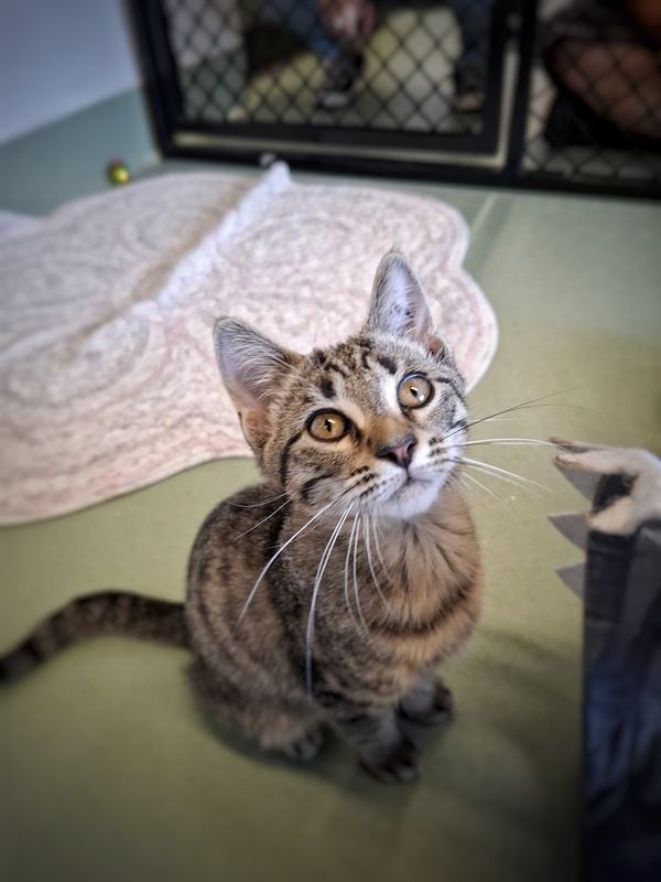 I'm a super affectionate little kitten with a big heart and an even bigger love for toys and cuddles. Whether it's chasing something that crinkles or curling up in your lap for a nap, I'm happiest when I'm close to my people.