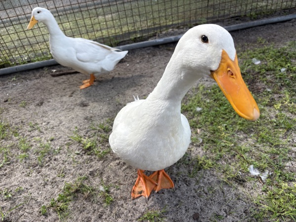 Say hello to Taffy and Daffy, two sweet-natured ducks looking for a forever home together. This bonded duo is full of personality and charm. Together, they make a calm, friendly pair who enjoy each other's company and bring a peaceful presence to the yard.