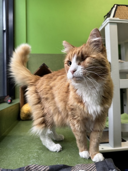 Meet Diego, a sweet boy with a gentle nature. He can be a little shy when you first meet him, but once he feels comfortable, he quickly shows his smoochy and affectionate side. Diego would do best in a calm household as a solo pet, with patient carers who respect his boundaries and let him initiate affection. Diego is searching for a loving forever home where he can feel safe and cherished, and would enjoy having enrichment activities such as toys, climbing spaces, and playtime to keep him entertained. He loves a good chin scratch, and is quick to start purring, however he much prefers to keep all 4 paws on the floor than to be picked up. Diego enjoys a brush which will need to be done regularly to keep his coat free of matting and it makes his fur feel like velvet!