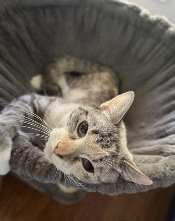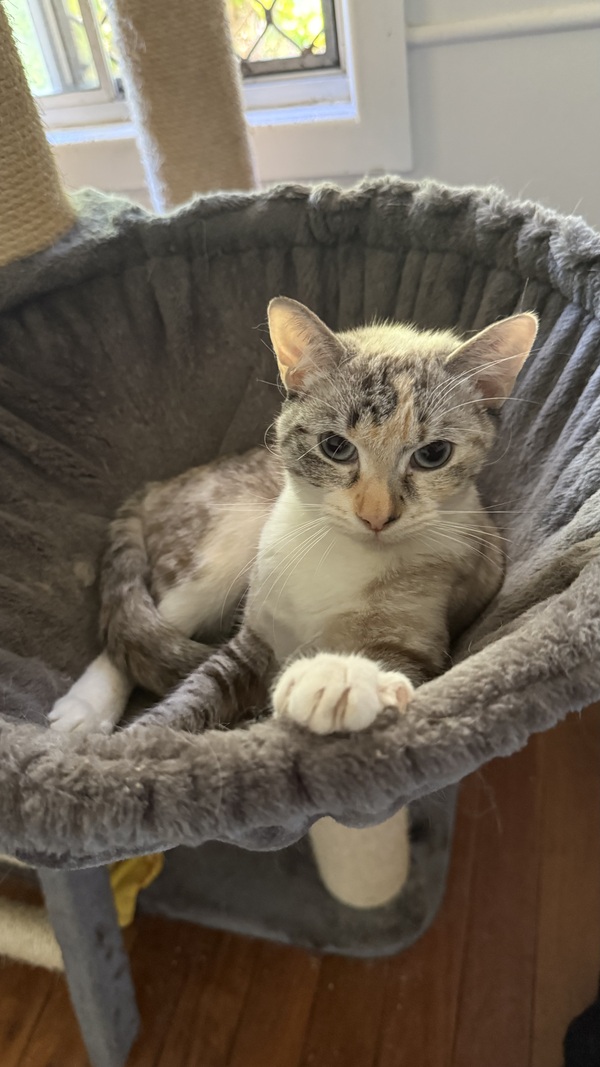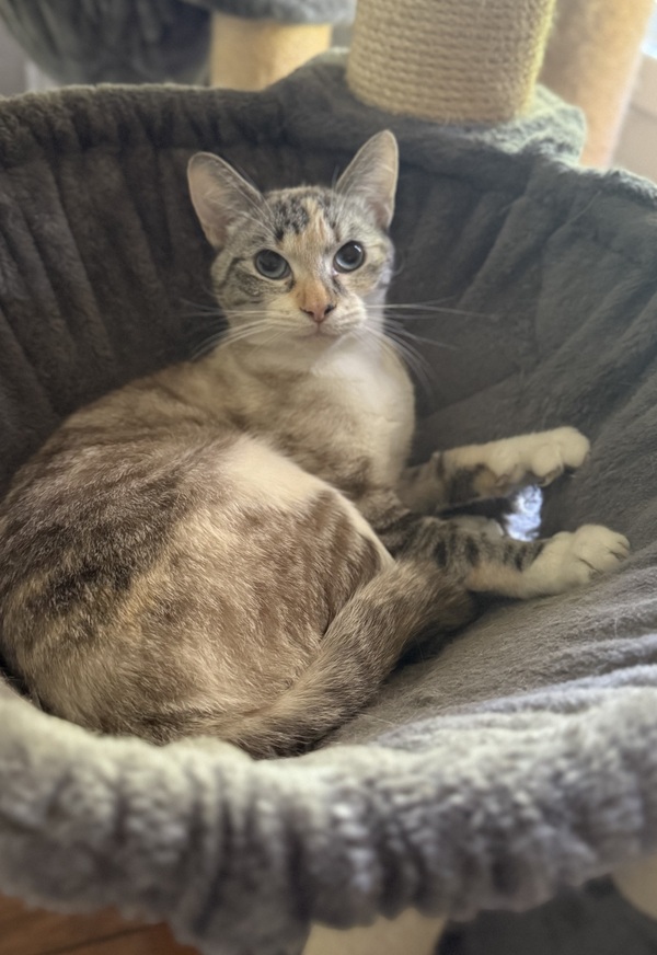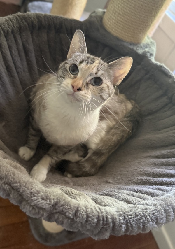 If you're looking for a gentle little cat with a quiet charm and a soft voice, Violet might just be the perfect match.