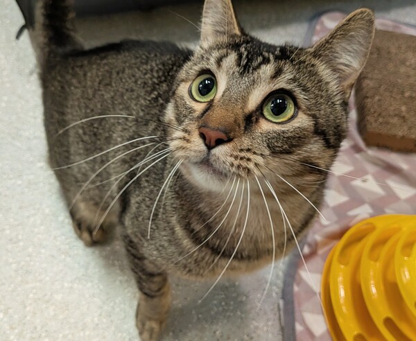 Jimmy is a strikingly handsome tabby boy with soulful eyes and a heart that's quietly waiting to be understood. Shelter life has been a bit much for him, and he's longing for a peaceful home where he can stretch out in sunny spots and enjoy the quiet company of his people. Though shy at first, Jimmy has all the potential to blossom into a devoted companion, he just asks for time, patience, and a gentle rhythm that lets him settle at his own pace. He's best suited to experienced adopters who are familiar with feline behaviour, especially the needs of shy cats. Jimmy may also do well with another cat, given slow and thoughtful introductions. If you're ready to offer Jimmy the calm, loving home he's been dreaming of, he promises to reward you with quiet loyalty and the kind of rare companionship that warms the heart.
