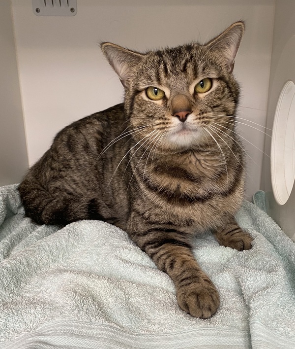 Hi, I'm Oscar. I may be a bit shy when we first meet, but give me a little time and I'll show you just how sweet and gentle I can be. I love quiet moments, perhaps sitting by your side while you read or work. I'm looking for a forever home where I can share all the love I have to offer. If you're looking for a calm companion to share your days with, I'm your guy. Let's make beautiful memories together.