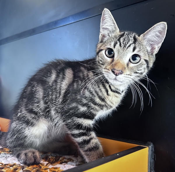 Zion is a bright-eyed male kitten with a playful spirit and a gentle heart. He is curious about the world around him, always ready to chase a toy or explore a new corner, yet he also loves to curl up for quiet moments of affection. Zion is still young and learning, which makes this the perfect time for him to bond with a family who can guide him with patience and care. His affectionate nature and lively energy promise endless companionship, and with the right home he will grow into a confident, loving cat. Adopting Zion means welcoming a sweet little soul who is eager to share his warmth and joy in every day ahead.