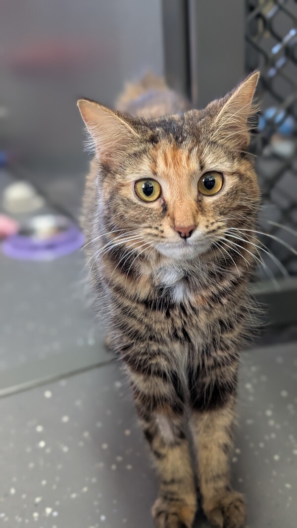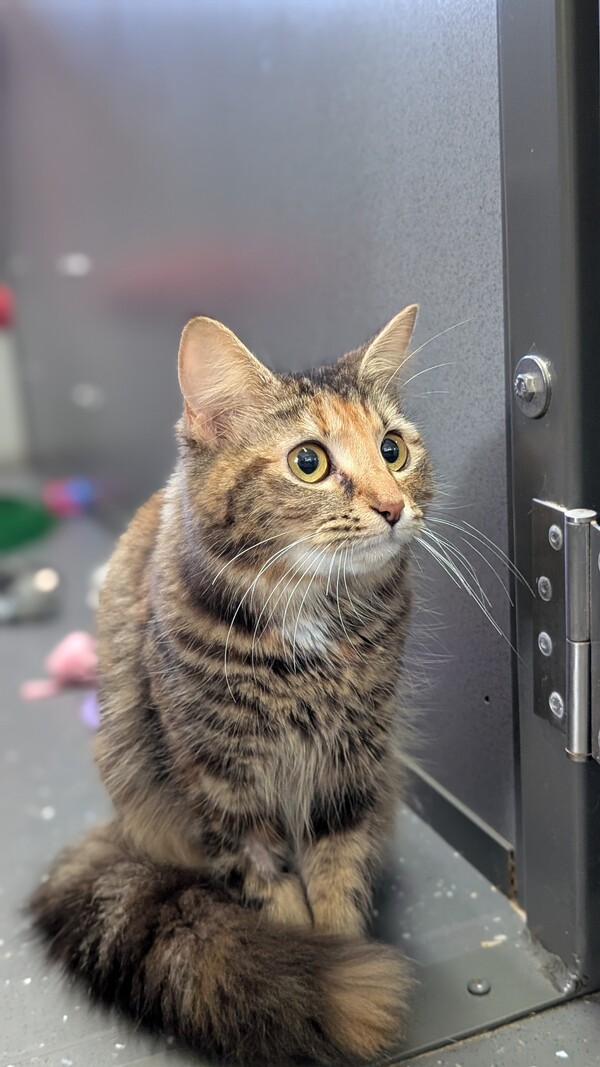 Hello there, my name is Brontosaurus but you can call me Brontie. I came into care with my 3 babies. You may be thinking "But Brontie, you are just a baby!" and you would be right! The staff guessed I am 1 but they wouldn't be surprised if I am younger than that. I am also tiny! My fluff makes me look bigger than I am. I am a very affectionate cat and love cuddles and pats. I like other cats and haven't shown much fuss around dogs. I love hiding so you may think I am shy but I just like my cozy spaces to feel comfy and safe, if you call me I usually come out no worries. I think any home would suit me, as long as it is full of love and keeps me inside. So what are you waiting for? Come adopt me today!My adoption price includes: A FREE 2kg bag of ROYAL CANIN dry food My desexing, microchip and vaccinations Adoption Price: $185 If you think I might be the perfect fit for your family, please fill out an adoption application today! www.rspcaqld.org.au/apply-to-adopt