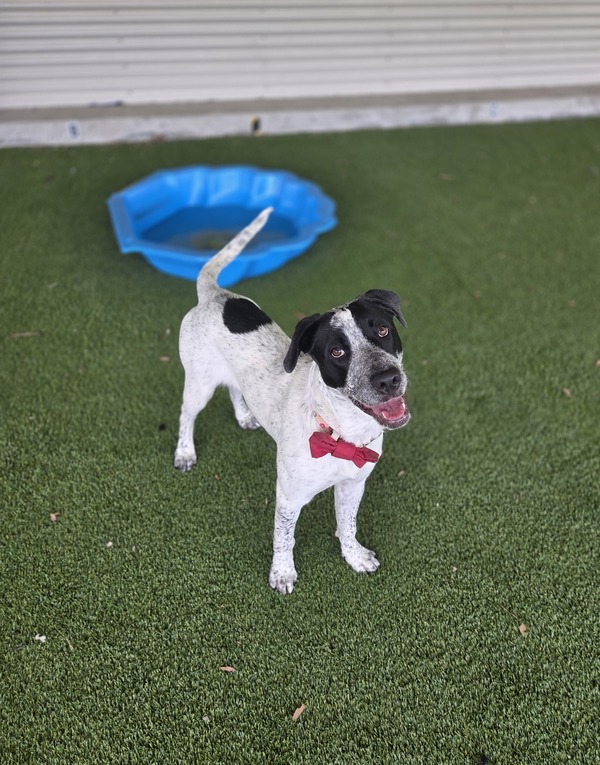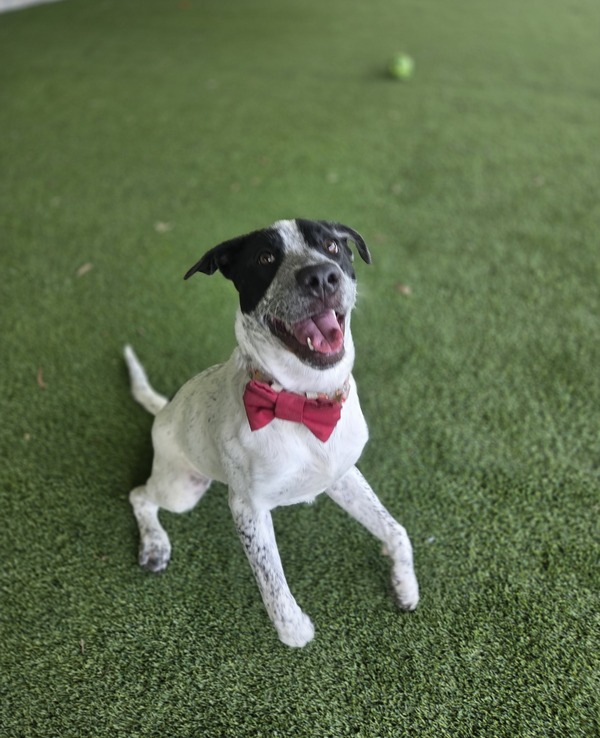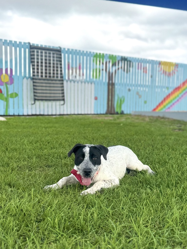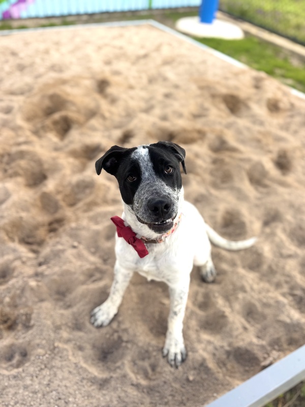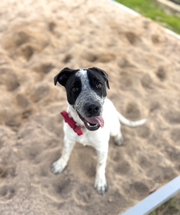 She travels well in the car and is learning fetch-she prefers the ball and is still figuring out squeaky toys. Lady enjoys sand pits, chasing toys, and yard play. She's dog-social but can be vocal and excitable when meeting new friends, so a calm, tolerant older dog would be ideal. A meet-and-greet is required at adoption. She's still working on lead manners but does better after exercise. Lady will need time to settle into her new home, so someone who's around often-or a dog friend-will help her feel secure.