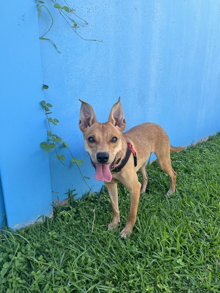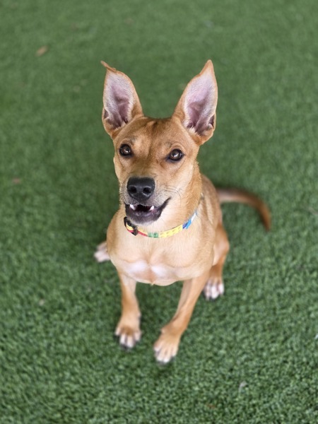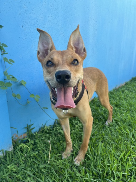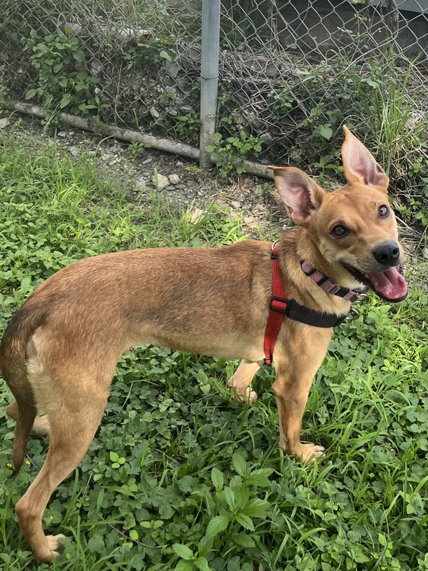An active, busy girl, Abby will thrive with daily play once comfortable. New toys can be scary at first, so sessions should always stay positive. She can become easily aroused, so ongoing basic training, impulse control, and "four paws on the floor" work will help her succeed.