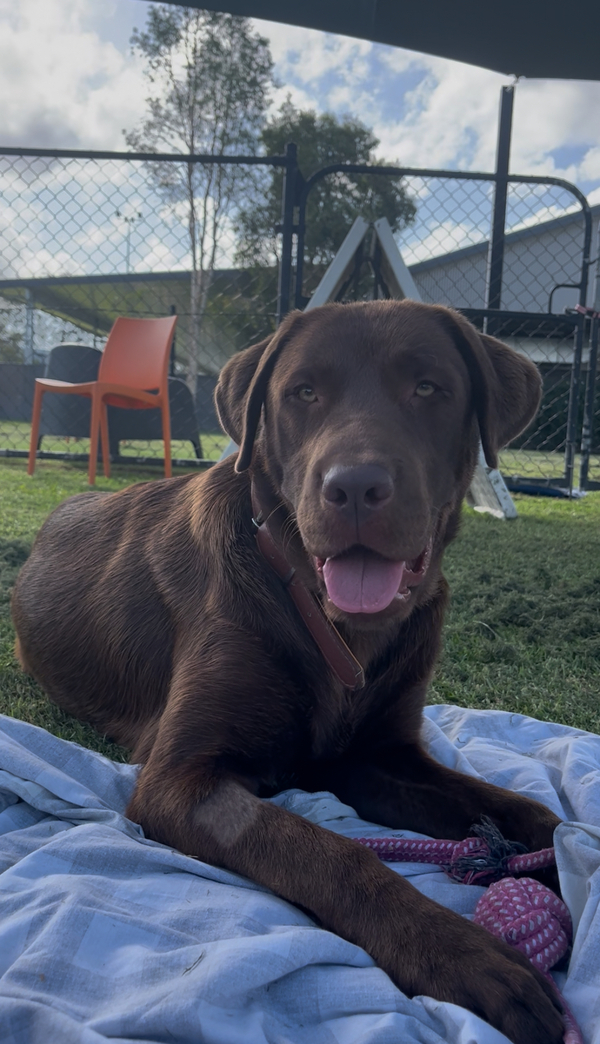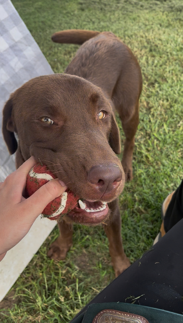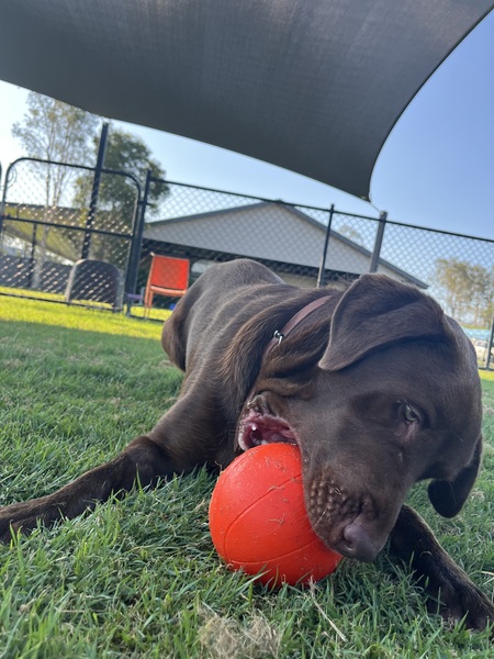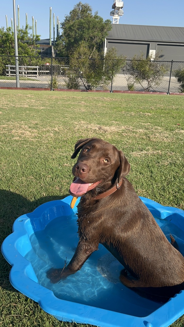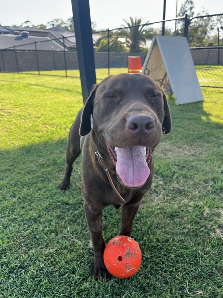 Bear loves his walks, especially quiet "Sniffari" adventures where he can explore the world around him. He absolutely adores water and could play all day, so clear start and finish times will help him learn balance. Fetch is another favorite game-he happily brings the ball back and is still perfecting his give it cue.