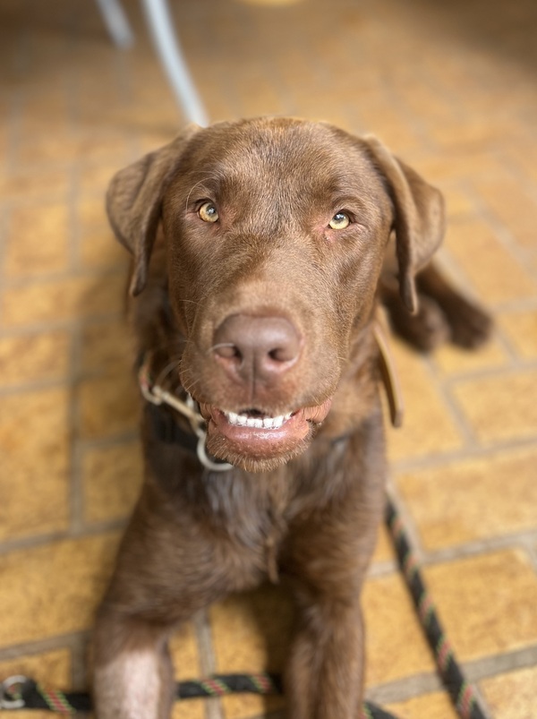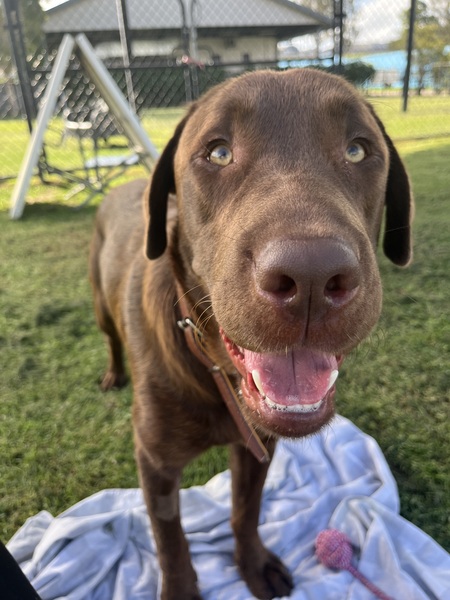 Bear would do best with someone home often, especially during his first week as he settles in. A secure, fenced yard is a must. He's not your typical Lab-Bear will be a rewarding project for the right family who values consistency, patience, and fun!