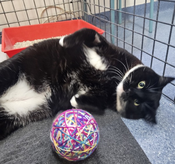 Hi, my name is Finn, I am a chilled fella that loves to lay back and relax. Some might describe me as "a little bit round" so my new owners are going to have to be proactive about my ongoing care and needs for my best health outcomes as I age. I am a super smooch who is very loving, so can live in most easygoing homes. I do not have any history of living with other cats, so if you have other cats these intro's will need to be super slow. Hope to see you soon! - Finn