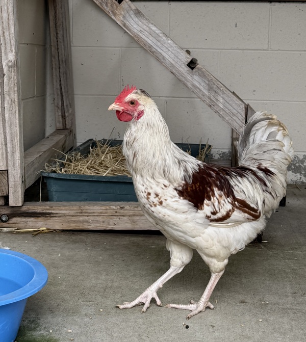 Meet Brucey, a young Sussex Rooster! Although we cannot fully confirm whether he is male, we are leaning toward it :)