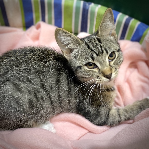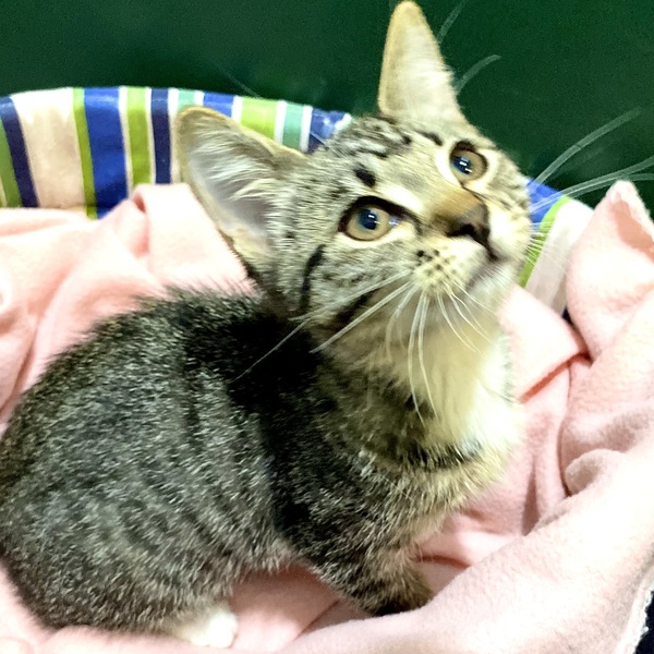 Say, "Hello" to Tanzy! This little girl has a very affectionate nature and will start purring as soon as she sees you. Tanzy seems to be a confident, out-going kitten who loves to climb and play and will make your home life exciting by zooming around on her go-go juice most of the day. Thankfully she does need time to sleep and that's when she's a gentle little darling who'll rest in your arms for cuddles. Tanzy has beautiful, brown fur with amazing blackish stripes and spots. Please read on for her care:-DIET/CARE-A diet of high-quality dry biscuits, wet food and bowls of fresh, cool water is needed. Regular vet visits are important. As Tanzy could become lost in a big house, a temporary launch room (room or crate) will be a huge benefit.INSIDE LIFESTYLE-We recommend an inside lifestyle as she's so active that she would disappear outside. Her inside life can be made exciting by adding large cat scratchers near a window and in a family room. Wand toys, warm beds and cardboard boxes are also lots of fun.FRIENDS - Most kittens are very adaptable and Tanzy may be able to live with cat-savvy, gentle children, another cat or perhaps a dog, if she is helped to live with them. A slow and steady intro is the best.Her adoption price includes: A FREE 2 kg bag of ROYAL CANIN dry food >Her desexing, microchip and vaccinations Adoption Price: $325 Tanzy's waiting for you to take her home www.rspcaqld.org.au/apply-to-adopt