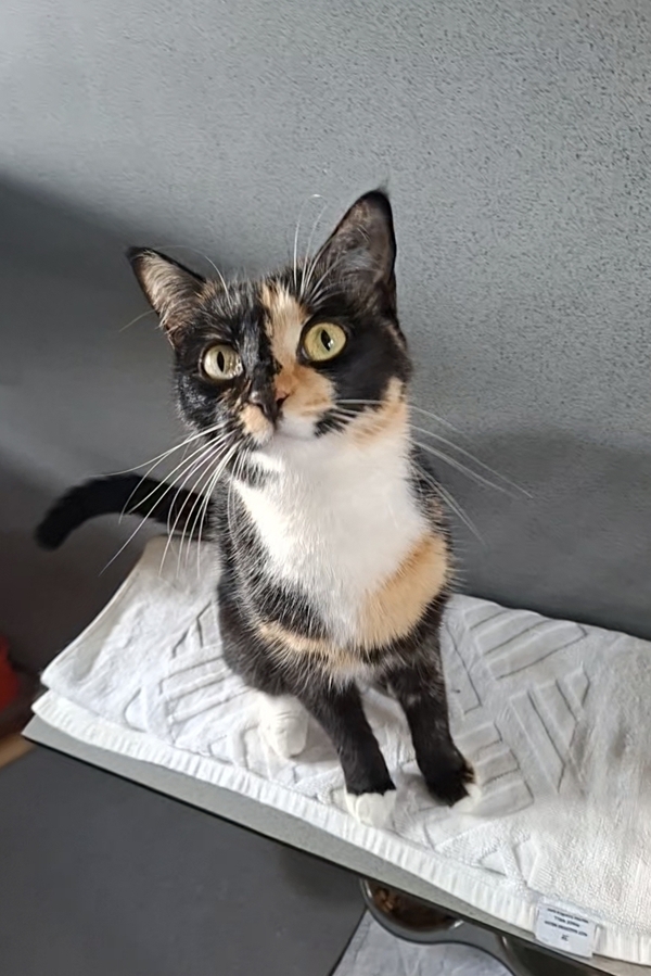 Meet Mushu, a young, sweet, and friendly calico cat residing in a shelter. Mushu is known for her gentle and brave nature, making her the perfect companion for a quiet household. Despite her calm demeanor, she brings joy and warmth to everyone she meets. Adopting Mushu means gaining a loyal friend who will enrich your life with her affectionate and courageous spirit. She's ready to find a forever home where she can share her love and serene presence.
