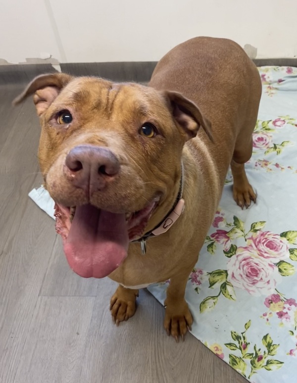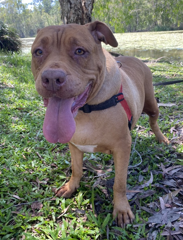 Muffin is a beautiful American Staffordshire Bull Terrier girl with a heart full of love. She's got that enormous Staffy grin that just melts your heart! She's friendly, social, enjoys meeting new people and making friends. While she's always happy to greet you with a wagging tail, Muffin also values her independence and knows how to enjoy some quiet time on her own.Her calm and gentle nature makes her an ideal match for someone looking for a balanced, easygoing dog. Muffin is the kind of girl who will happily join you for a walk or relax by your side while you unwind together in the aircon.If you're searching for a loyal friend who brings both affection and serenity into your life, Muffin is ready to be your perfect match!My adoption price includes: A FREE 4kg bag of ROYAL CANIN dry food My desexing, microchip and vaccinations Adoption Price: $450 If you think I might be the perfect fit for your family, please fill out an adoption application today! www.rspcaqld.org.au/apply-to-adopt