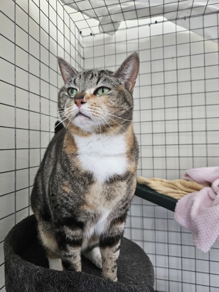 Hi friends, I'm Harlow. I am a really lovely lil lady - sweet and gentle and always up for a chat. I can live in most easygoing homes, who can give me toys, a warm bed to snuggle into, and a window for good birdwatching opportunities (novice birder over here... come join my hobby maybe?) I hope I can meet my new family soon, I will be so so glad to go into my new home... Please come down to RSPCA Malaga to meet me today. Byeeee - Harlz