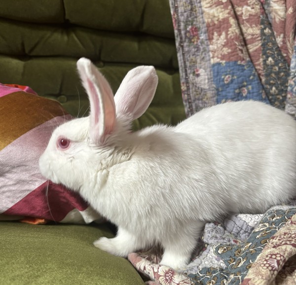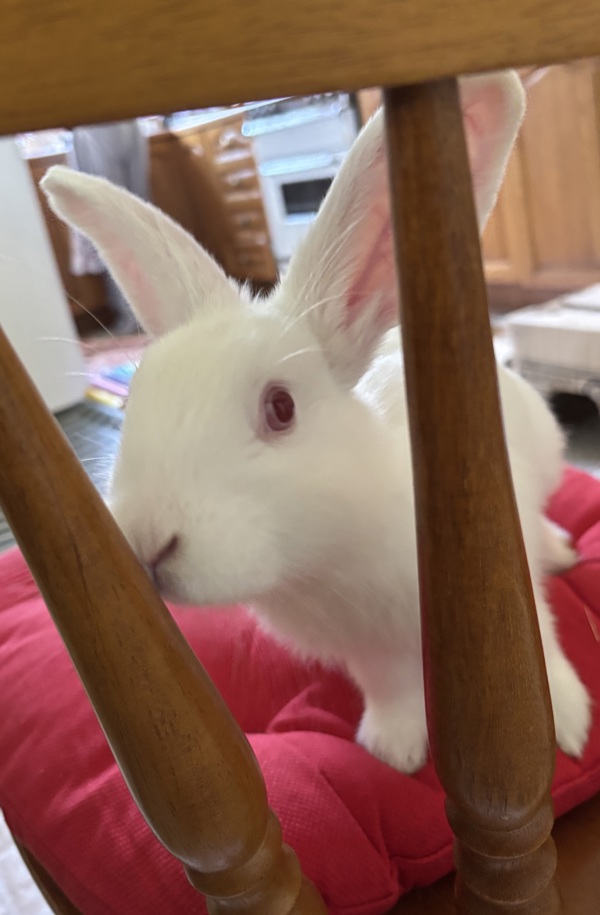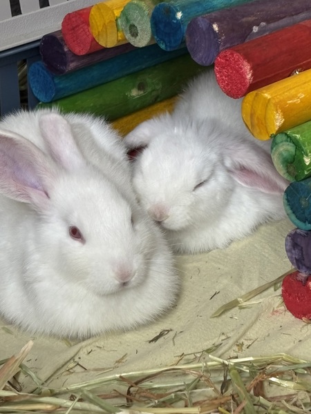 Meet Rhubarb, a curious, playful, expressive bun that is full of personality. With a strong zest for life, this avid explorer loves spending his days zooming through tunnels, doing impressive binkies and surveying his surroundings from a nice tall chair. Although often reluctant to tear himself away from adventure, Rhubarb also enjoys taking it easy. He loves basking in the afternoon sun, dramatically flopping his legs to the side and cuddling up to his bonded bestie Asparagus. Rhubarb makes the perfect companion as he loves to be involved! Shadowing you around the house is how he shows affection. Because of his curious nature, Rhubarb would do best in a home with plenty of enrichment, mental stimulation and space to hop around. Rhubarb must go home with his bonded best friend Asparagus, and together, they are sure to be loving companions to a very lucky person.