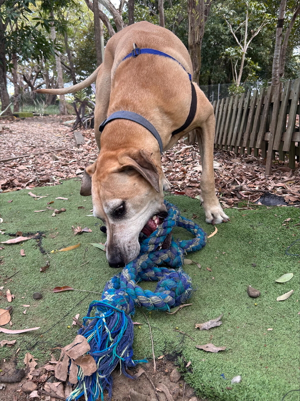 Hi, I'm Wilson! I might be an older guy, but I still have lots of energy! I absolutely love going for my daily walks and will bark at you if you're taking too long! I can get a bit too excited and pull but I'm a very good listener and will slow down if you ask me to! I'm a pretty chill guy, I walk well with the other dogs here, I even ignore their silliness, but I don't appreciate them invading my space. So will definitely need a home with no pestering dogs please! I could be open to another older chill female, but preferably an only dog home where I can get all the loving! I can take some time to warm up to people I don't know, but once I trust you, I absolutely love you! I turn into a goofy boy during play time; I love playing tug with you and fetching the ball! I can be a bit silly during tug and grab where you're holding but if you tell me to leave it, I'll listen straight away! Now because I'm a bit of an older guy I do have some stiff joints, but that can be easily managed and other than that I'm in perfect health! So, if you think I'm your perfect match then come meet me today!