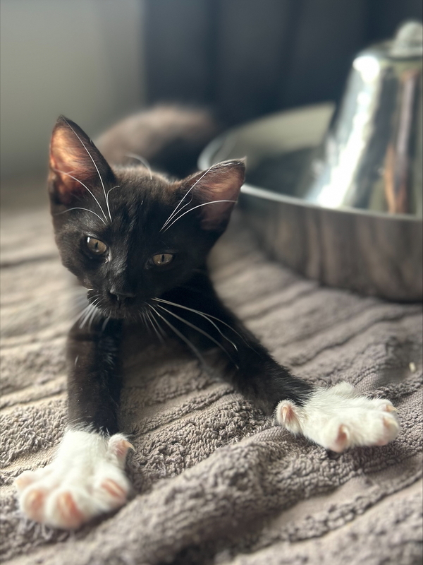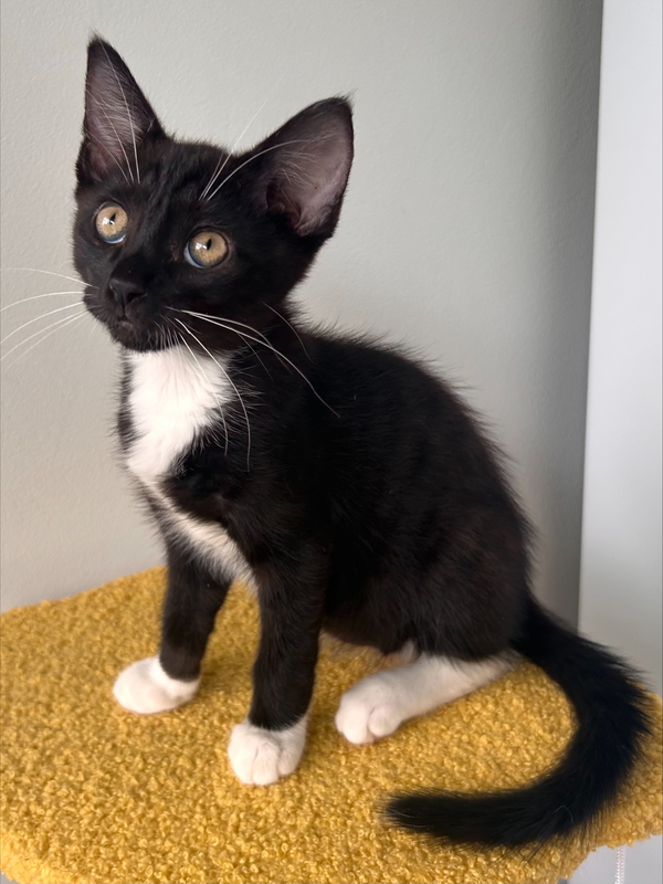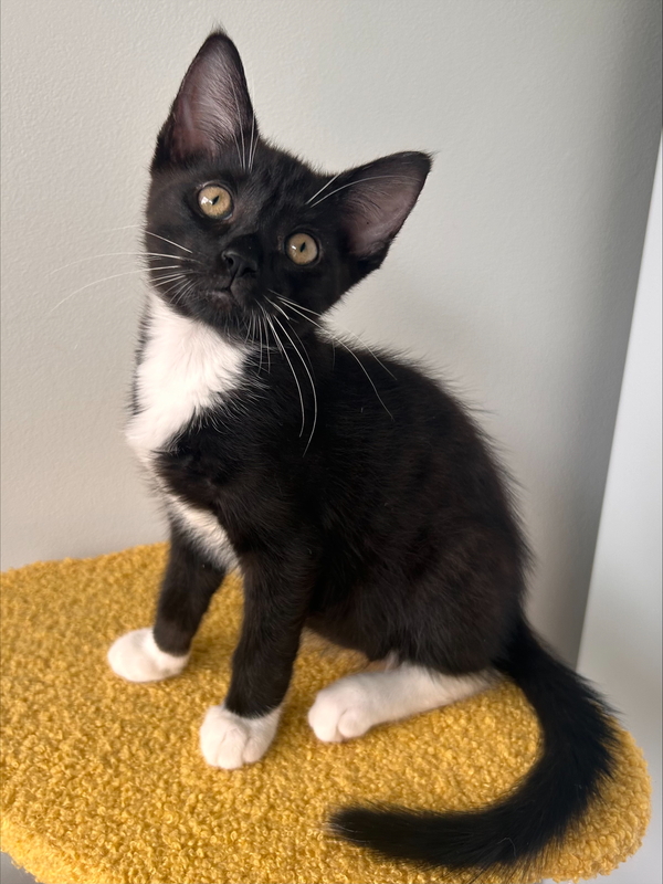 I'm a very sweet and soft-natured boy, who can be a bit shy but if you talk to me sweetly and call out "pud pud" I'll be your best friend in no time! I've been in foster with some older kittens who took me under their wing and showed me the ropes, I love playing with them and especially love snuggling with them! I love being up in the cat tree, either curled up in the sun or watching the world go by! I did meet some older cats and dogs in foster, I'm very respectful of the older kitties and sometimes I can get overwhelmed by the doggos, so I either need a home with no dogs or pups that will give me my space. I dream of a home where I can share my love and playfulness with someone who will give me gentle pats and cuddles in return! Adopt me and fill your life with joy and cuddles!