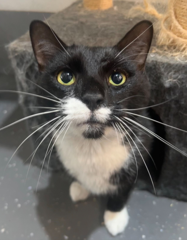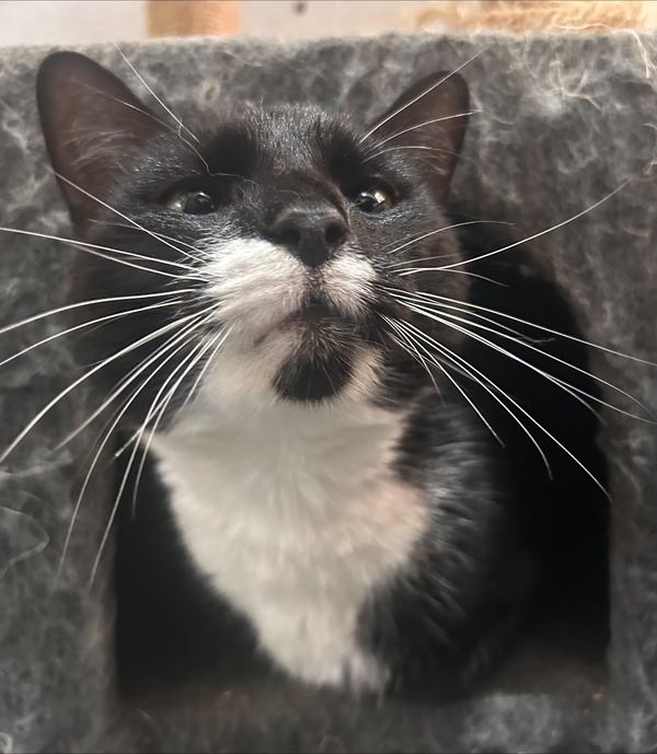 Hello! I mean Meow! My name is Benji! I am a handsome Tuxedo man looking for his new home. I came into care with my brother and mother after our owner fell on hard times. Though we have been living together for 6 years we aren't super bonded and do not pine when seperated so I do not need to be rehomed with my family. As I was living with other cats my whole life I think it would be nice to have a place to call my own but if you have another laid back cat that would be okay too. I am an affectionate gentleman most of the time but am quick to tell you when I do not want to do something, so a home with older cat savvy kids (or no kids) is a must! Staff think my 'tude will tone down in a home environment where I have more space and less stress. My ideal home will be mostly quiet with plenty of hidey holes and sun spots for me to enjoy. If you think you can give me an amazing home, come to the shelter and meet me!