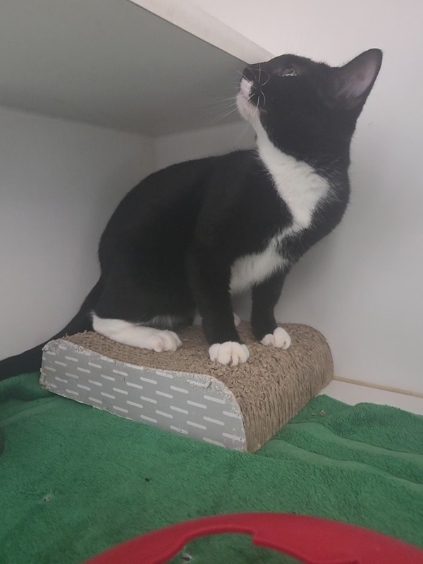 Mogwai is a gorgeous tuxedo lady with a personality as striking as her black-and-white coat. She's a cat of rich emotional depth (that's the polite way of saying she's delightfully unpredictable). One moment she'll be curled up beside you, purring like a tiny engine and demanding smooches; the next, she'll politely-but firmly-let you know that personal space is now the law of the land.