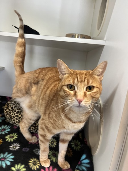 Say hello to Cluedo, the sweetest little detective you'll ever meet! This charming ginger lady may walk on three legs, but she doesn't let that slow her down- she hops, trots, and investigates life with cheerful confidence.Cluedo came into our care after she was injured from being hit by a car and required a leg amputation. She has healed beautifully and moves around with ease. She can climb low cat trees, navigate furniture, and jump shorter distances like a pro. What she really excels at is finding the sunniest spot in the room... and claiming it as her own.