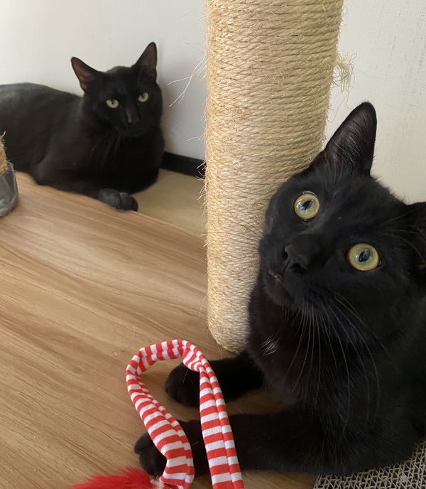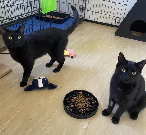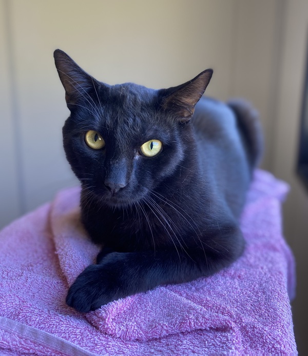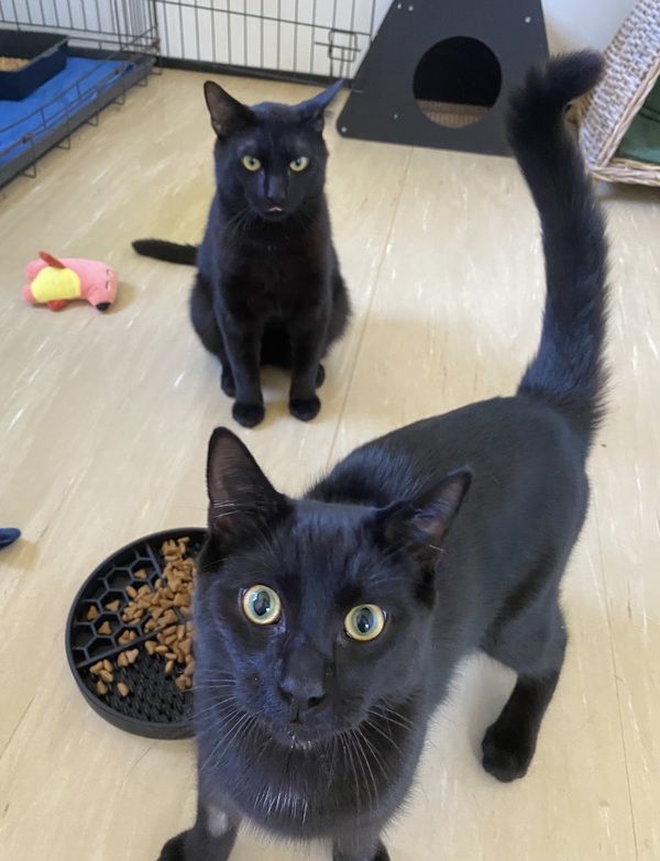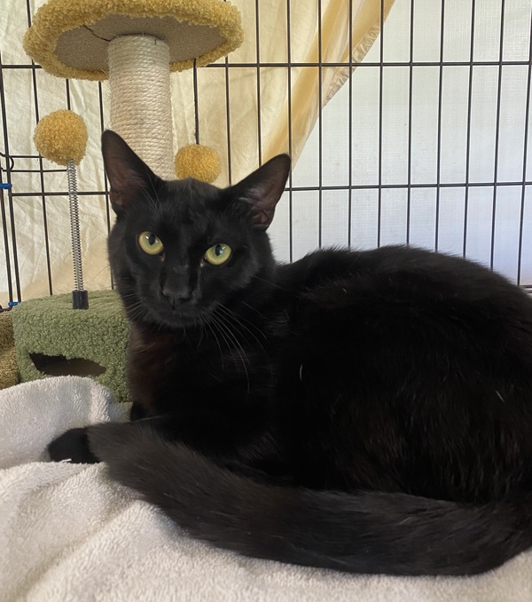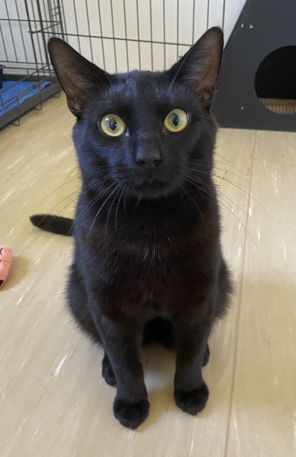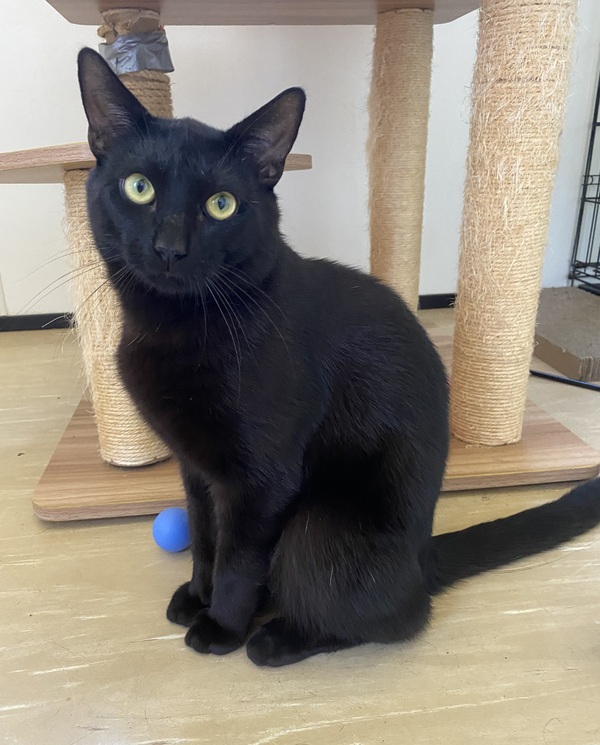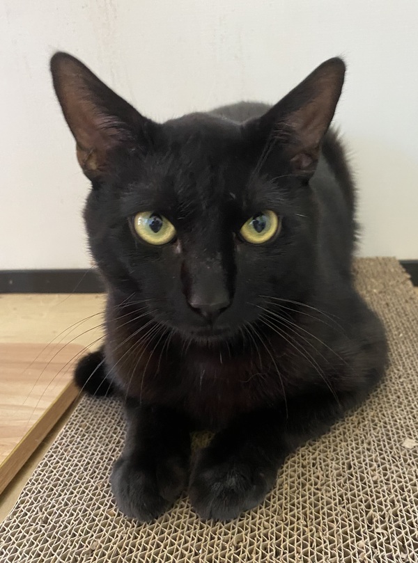 Meet Hank! Hank is a striking black boy with a big quirky personality. He's looking for an experienced and patient adopter who understands that trust takes time and is willing to let Hank set the pace. It seems Hank has not had a loving family before arriving here so is still learning that pats can be comfortable. He is cat social and enjoys the company of other cats so will need a confident social feline buddy for companionship and will make a great feline friend for your cat! Hank's love language is food - especially chicken which can be a great way to build positive associations and connection with him. Though he may be a challenge at first, he sure has the potential to be an incredibly rewarding companion for someone who appreciates his individuality and is committed to helping him continue to grow.