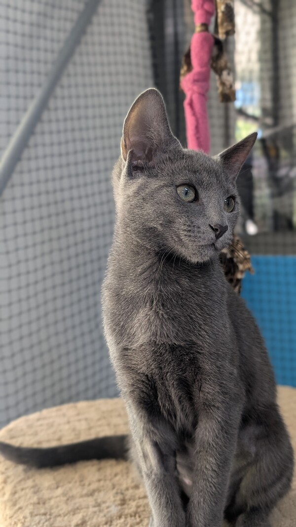 Meow meow purr! My name is Whimsy Lou, I am a dainty young girl looking for my furever family. I am a playful and active young kitten who loves exploring and adventures! I love to rough house with my siblings and play with my toys, but I can calm down and be a snuggle puss as well, just wear me out first. I love food and if you can't find me, just shake the bag of biscuits and BOOM I am there! Come meet me and you will fall in love I bet!