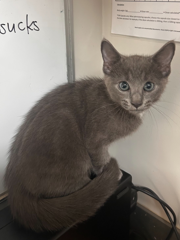 Hey there! My name is Warble. I can be a vocal kitty especially when I am hungry. I can be a little reserved at first and it takes me some time to warm up to you but once I feel comfy I am an affectionate and playful kitty cat. I love my brother Peep and I tolerate the other kitten housemates, so if you already have a laid back cat I should get on with them fine. I think a house with cat savvy kids (or no kids) will be great for me. Once I adjust to my home I will be a silly and rambunctious kitten just you wait!My adoption price includes: A FREE 2kg bag of ROYAL CANIN dry food My desexing, microchip and vaccinations Adoption Price: $325 If you think I might be the perfect fit for your family, please fill out an adoption application today! www.rspcaqld.org.au/apply-to-adopt