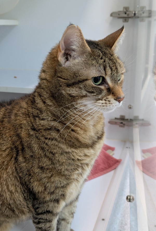 Snuggles is very affectionate but she prefers interactions on her own terms, so being confident in reading feline body language and respecting her boundaries is a must. Plenty of environmental enrichment, including a cat tree, scratching posts, toys, and enrichment feeding activities, will help her feel relaxed and confident. Snuggles is seeking an indoor-only, peaceful home with adults or older teenagers who are patient, gentle, and ready to give her the time and kindness she needs to become a loving companion.