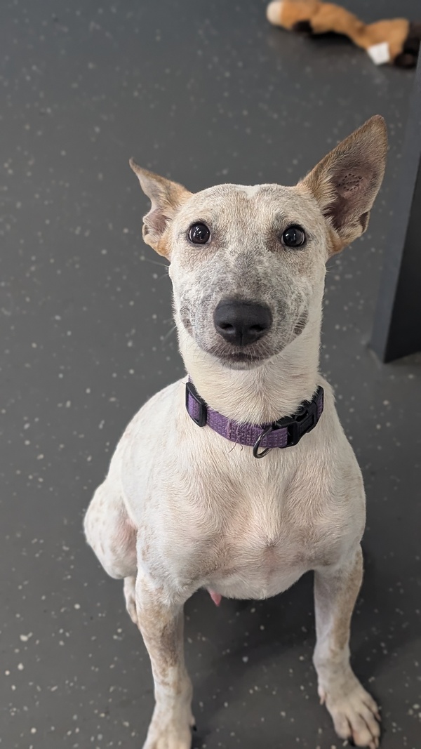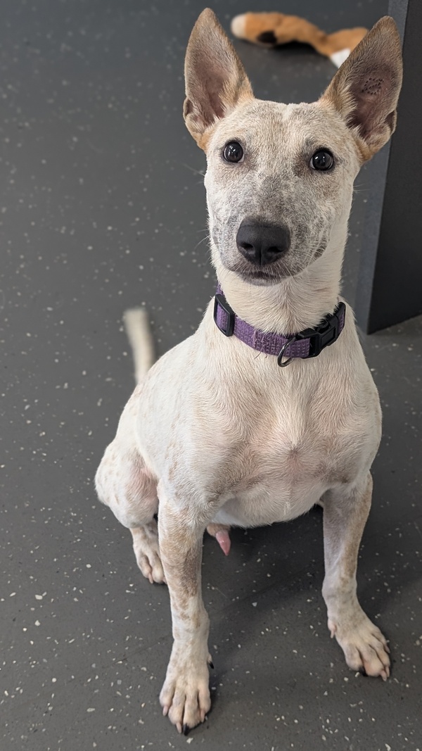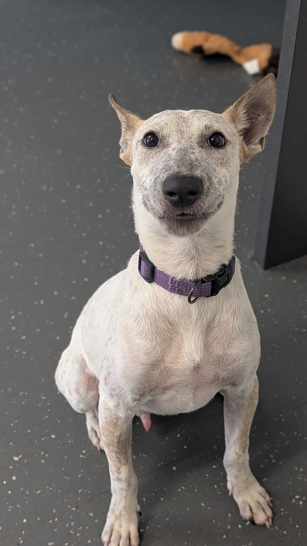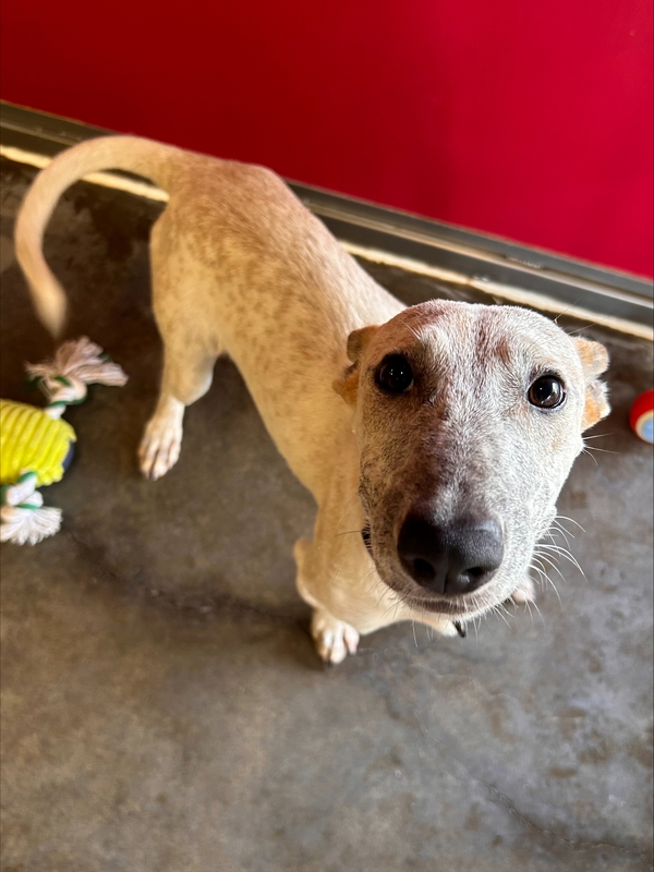 Hey there I am Ringo! I am a sweet affectionate little snuggle bug. I didn't have the best start to life but it hasn't stopped me from being a loving and trusting pup. I am still learning about toys and how to play, I am also learning not to be mouthy or jump up but I am very clever and food is LIFE so I am not hard to train. I love other dogs and don't mind being bossed around so a home with other dogs would be good. As I am still learning how to control my excitement older kids that can handle the occasional pounce would be recommended. I walk like a dream already and know sit, so with proper training and love, staff say I will make a perfect companion in no time, all I need is a family and a chance! Are you my new family?