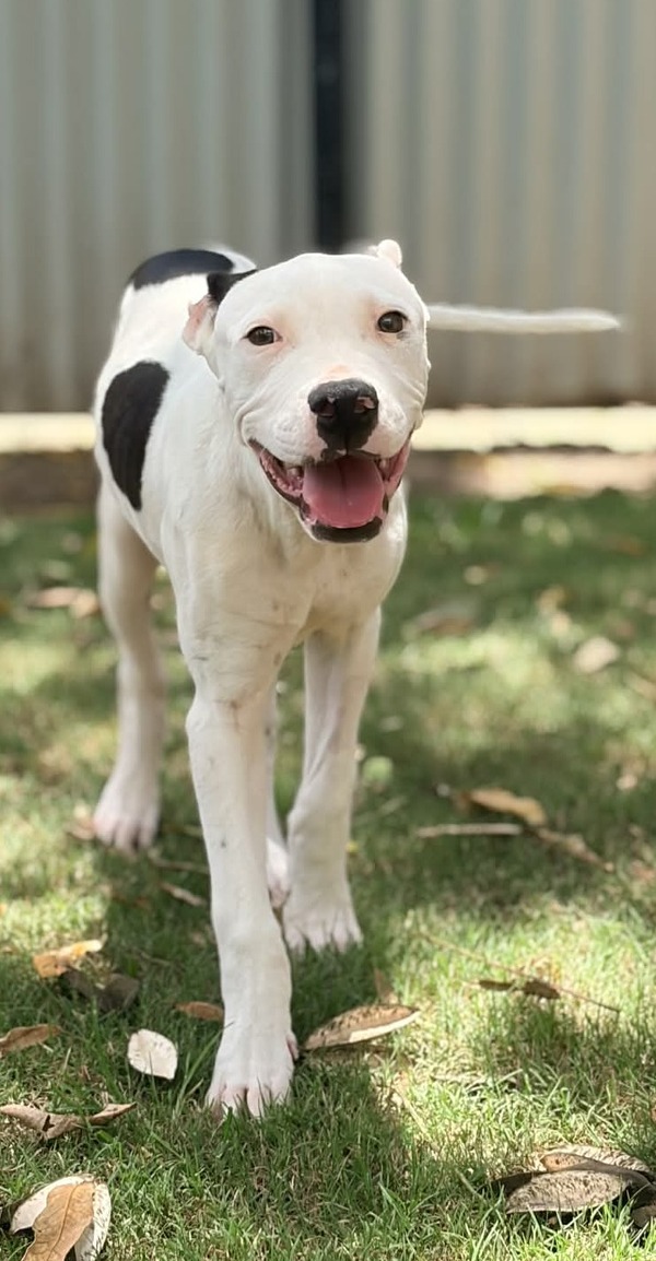 Squid is an adorable young pup who's had a rough start to life, but he's ready for a fresh beginning with a loving family. At just 4 months old, Squid is full of potential and eager to learn. His mix of American Staffordshire Bull Terrier and Bull Arab means he'll grow into a strong, loyal, and affectionate companion.