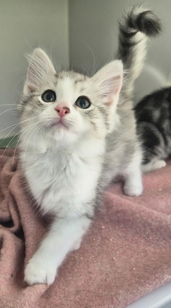 I am a curious little adventurer with a lot of that fun kitten energy! I will need things like cat trees, tunnels and toys to entertain me while you are out. I'd love to play with you, and I can make a toy out of anything, like your pens or keys! I like to explore and sometimes get into mischief, but that's how I learn about the world!