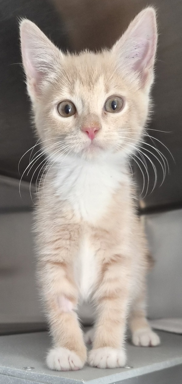 Hi there, my name's Sandals!I'm a playful heartthrob who is curious, energetic, and full of personality! I can be shy in new places, but pats and a soft voice are the quickest way to my heart!I would love a home with patient furever family who will allow me to take my time to settle into my new home. I will need a safe room to call my own to start with.Once I'm comfortable, you'll see my playful kitten side come out! I love to play with toys that move and jingle! My favourite toy at the moment is a bouncy spring that I can chase and bap with my paws! A cat tree to call my own would make me the happiest kitten! After some playtime, I'll be more than happy to curl up next to you for a cozy nap. I will need to be kept indoors to protect my light features from the sun.I may be suited to a home with a friendly feline companion who can keep up with my kitten energy! We would need a slow introduction to each other in the home to ensure we start off our friendship on the right foot.I am family friendly but I am not used to a home with small children so they will need to understand to give me space when I need it.