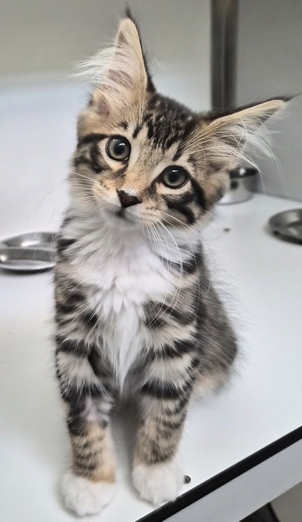 I'm full of that good kitten energy and I love to play! There's never a dull moment when I'm around! I would be thrilled to join a family who can shower me with affection and keep me entertained with toys and games. My current favorite toys are the ones I can chase and pounce on!
