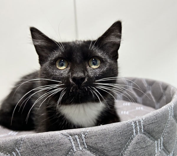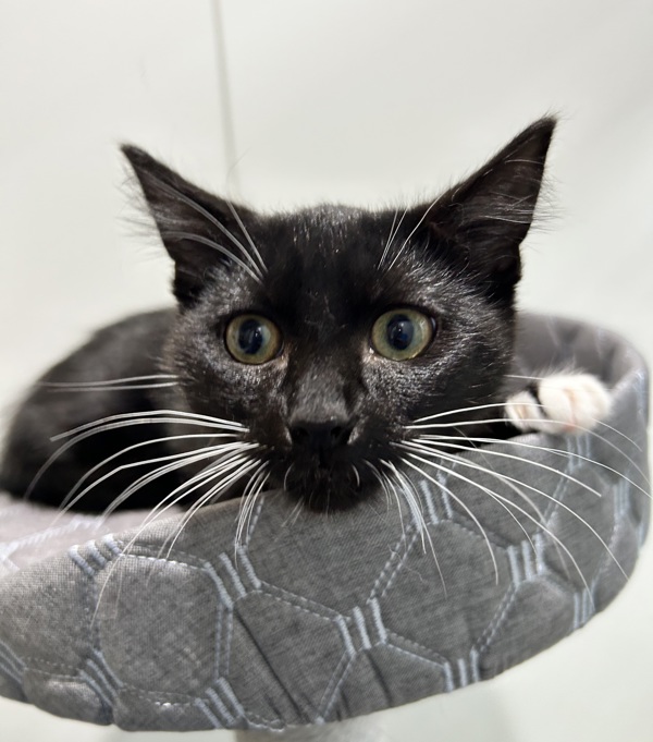 Vera is a delicate black-and-white female kitten who was rescued just before she fully turned wild. Naturally shy, she's still learning that the world can be a safe and gentle place, and she'll need an adopter who understands the importance of patience and trust-building.