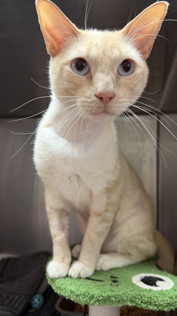 This striking boy is ready to become a treasured companion, bringing charm, beauty, and warmth to a household that can appreciate his unique flame point coat and delightful personality.
